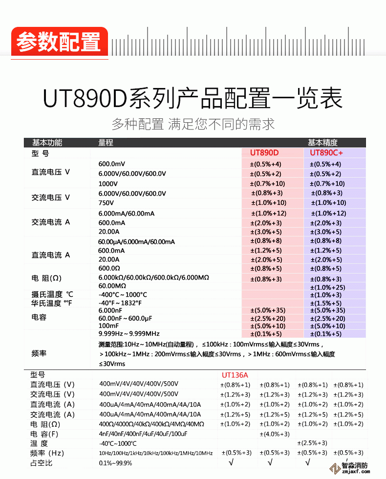 | 標準配件 | 表筆、電池、溫度探頭 (僅UT890C+) | ||