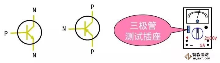 分開表筆,將被測三極管按圖示放入插座,指針指示的刻度乘以12即約為三極管反向截止電流值。