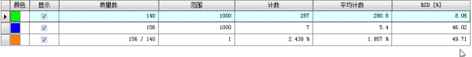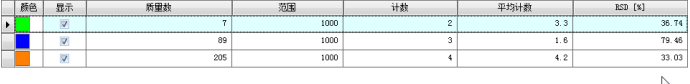 以2%高純硝酸溶液進樣,測量質量數9,115,209處的離子計數,分別測量20個數據,取其平均值。