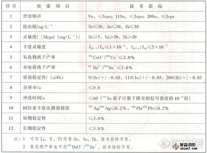 新安裝的儀器的檢定,應符合儀器說明書中規定的計量要求,其計量特性應優于規程《JJF1159-2006 四極桿電感耦合等離子體質譜儀校準規范》性能指標。使用中和修理后的儀器的檢定,應符合中華人民共和國國家計量技術規范《JJF 1159-2006 四極桿電感耦合等離子體質譜儀校準規范》中規定的性能指標-表1。