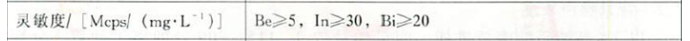 以1×10-2 mg/L Be、In、Bi、混合溶液進樣,測量質量數9,115,209處的離子計數,積分時間0.1s,分別測量20個數據,取其平均值,在除以其準確濃度值,即為個元素的靈敏度S。
