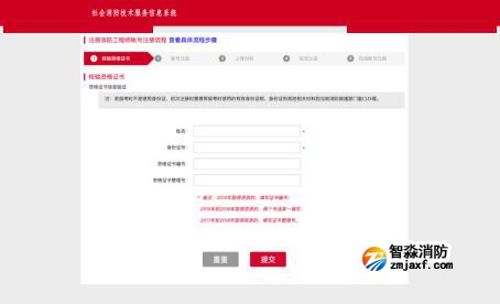 第四步:如實填寫姓名、身份證號、資格證書編號、資格證書管理號,進行注冊消防工程師的基礎數據驗證;