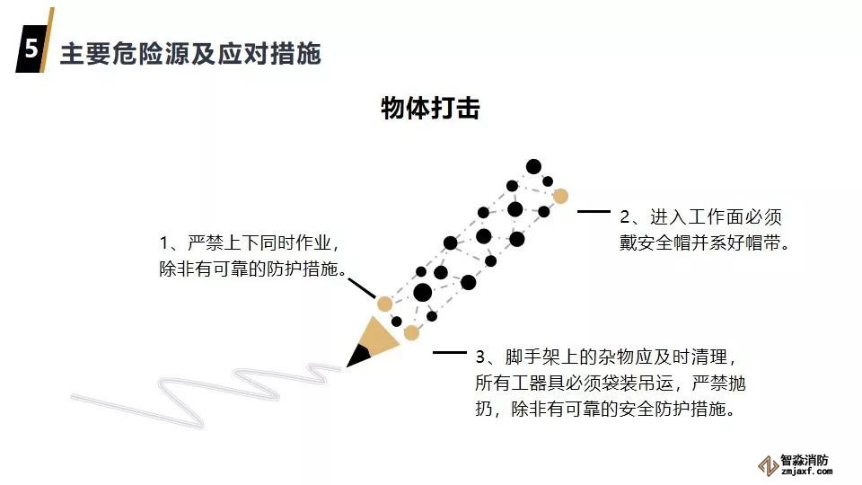 4、作業(yè)平臺(tái)搭設(shè)必須符合規(guī)定,牢固可靠,平臺(tái)下2m范圍不得堆放物料;作業(yè)時(shí),平臺(tái)下方嚴(yán)禁行人穿過。