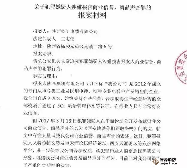 舉報帖發出后,陜西奧凱電纜有限公司不僅不承認問題,還反咬一口,聲稱該帖文中的不實言論損害了公司的聲譽,造成了極其嚴重的惡劣影響。