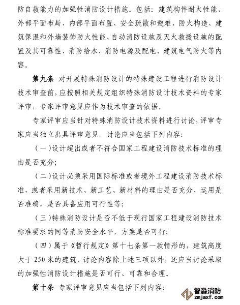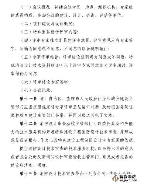 評審專家應(yīng)當符合相關(guān)專業(yè)要求,總數(shù)不得少于七人,且獨立出具評審意見。特殊消防設(shè)計技術(shù)資料經(jīng)四分之三以上評審專家同意即為評審?fù)ㄟ^,評審專家有不同意見的,應(yīng)當注明。省、自治區(qū)、直轄市人民政府住房和城鄉(xiāng)建設(shè)主管部門應(yīng)當將專家評審意見,書面通知報請評審的消防設(shè)計審查驗收主管部門,同時報國務(wù)院住房和城鄉(xiāng)建設(shè)主管部門備案。