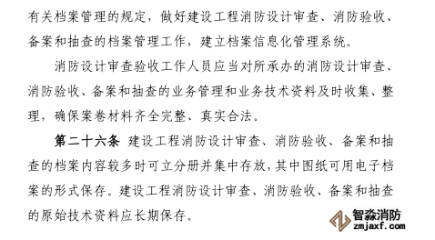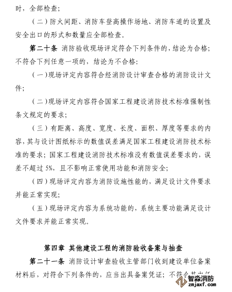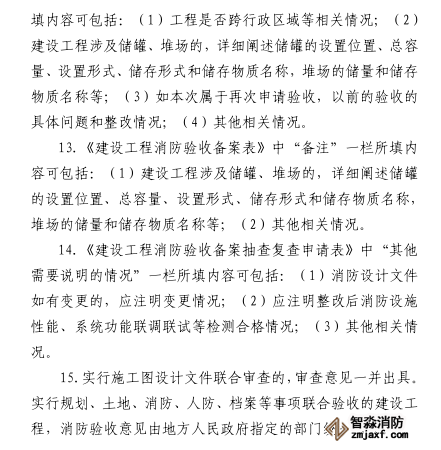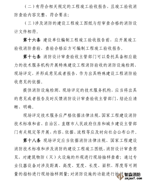 第三十條 消防設(shè)計審查驗收主管部門應(yīng)當自受理消防驗收申請之日起十五日內(nèi)出具消防驗收意見。對符合下列條件的,應(yīng)當出具消防驗收合格意見: