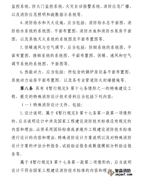(三)消防設(shè)計文件符合國家工程建設(shè)消防技術(shù)標準(具有本規(guī)定第十七條情形之一的特殊建設(shè)工程,特殊消防設(shè)計技術(shù)資料通過專家評審)。