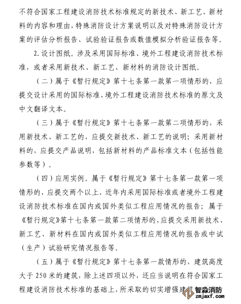 (二)消防設(shè)計文件擬采用的新技術(shù)、新工藝、新材料不符合國家工程建設(shè)消防技術(shù)標準規(guī)定的。