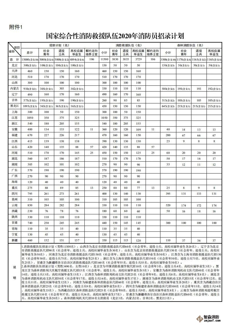 1.國家綜合性消防救援隊伍2020年消防員招錄計劃