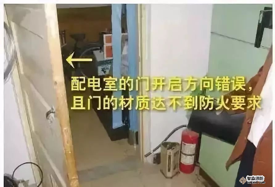 隱患危害:當配電室發生較大安全事故時,向內開啟的門將為人員的逃生增加阻礙,材質不達標則會在人員逃生過程中增加觸電風險。