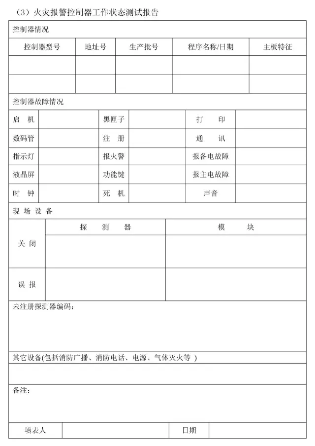 (2)現(xiàn)場探測器和手動報警按鈕每季度檢測一次,每年的第一次和最后一次全部檢測,其余每次抽測總數(shù)的10%且不能重復。