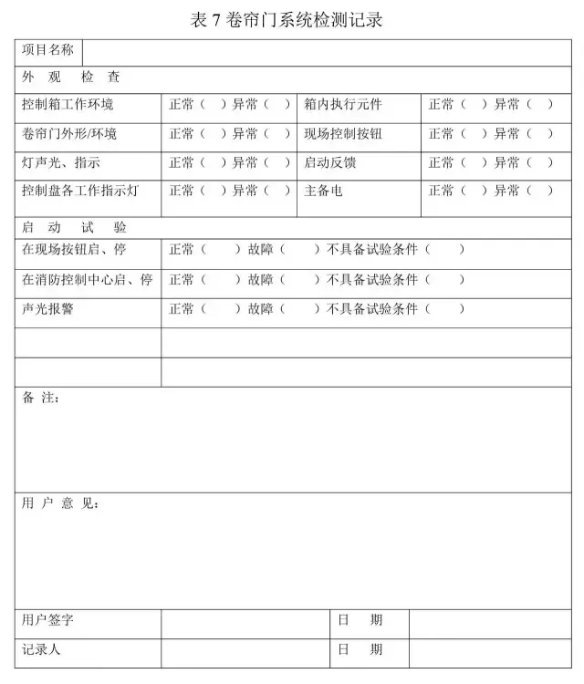 每兩月一次,防火卷簾門每年的第一次和最后一次全部檢測,其余每次抽測總數(shù)的20%且不能重復。