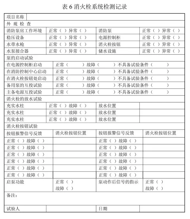 每季度檢測一次。消火栓按鈕每年的第一次和最后一次全部檢測,其余每次抽測總數(shù)的20%且不能重復。