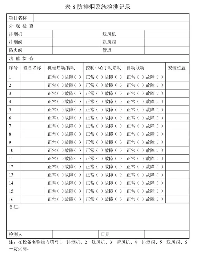 每兩月一次,排煙閥每年的第一次和最后一次全部檢測,其余每次抽測總數(shù)的20%且不能重復。
