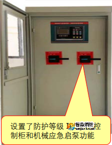 11.0.12消防水泵控制柜應設置機械應急啟泵功能,并應保證在控制柜內的控制線路發生故障時由有管理權限的人員在緊急時啟動消防水泵。機械應急啟動時,應確保消防水泵在報警5.0min內正常工作?!緢D示8】
